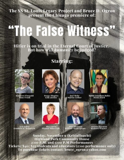 On Sunday November 9, 2025 there will be two performances of the theatrical play, “The False Witness,” at the Highland Park Community House. The play’s tagline describes: